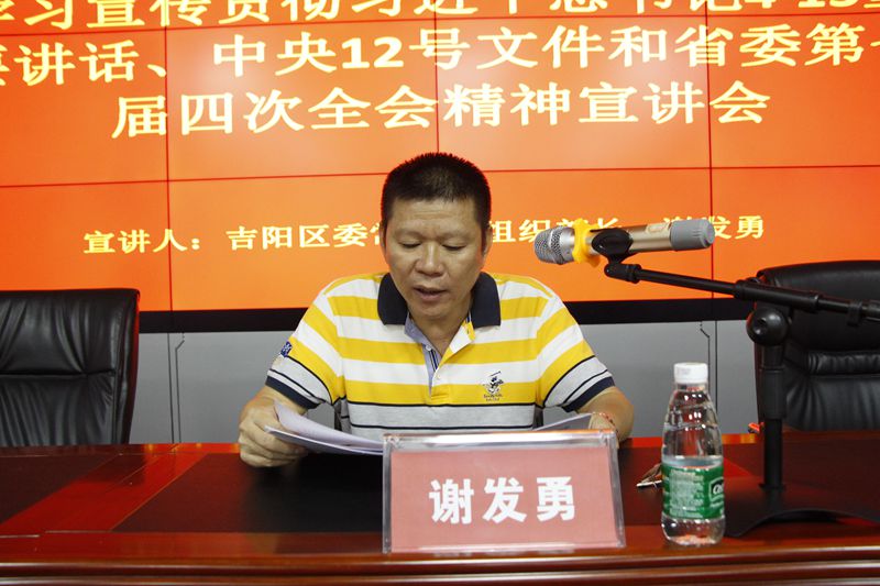 吉陽(yáng)區(qū)委組織部副部長(zhǎng)彭云,區(qū)委組織部有關(guān)負(fù)責(zé)同志,集團(tuán)公司總裁陳云,集團(tuán)公司全體黨員、入黨積極分子30余人聆聽宣講會(huì)。
