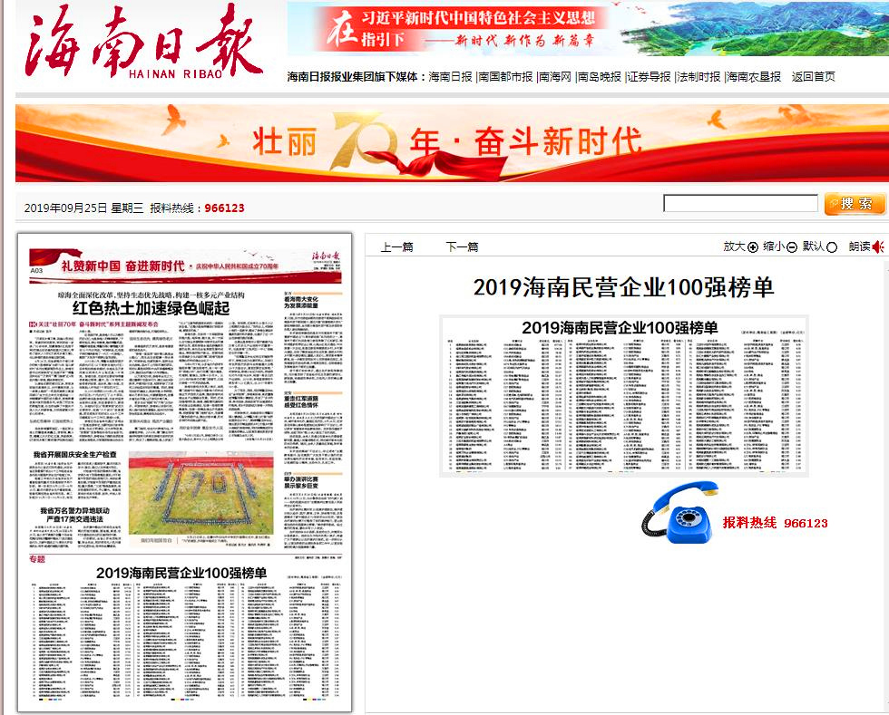 明佳集團(tuán)被評(píng)為“2019海南民營(yíng)企業(yè)100強(qiáng)”企業(yè)
