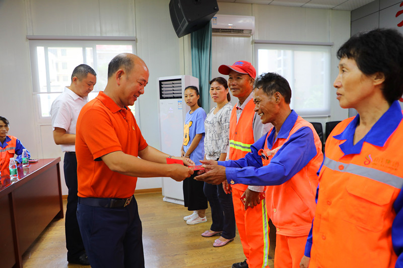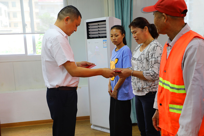 (生產(chǎn)部經(jīng)理楊洪向學生家長發(fā)放助學金)