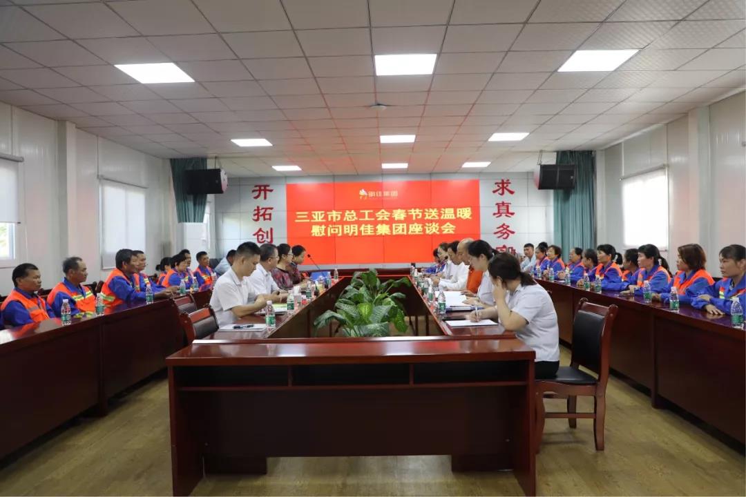 最后,慰問(wèn)團(tuán)一行來(lái)到三亞明佳園林環(huán)衛(wèi)集團(tuán)有限公司召開座談會(huì)。會(huì)上,慰問(wèn)團(tuán)展開討論了高齡、高風(fēng)險(xiǎn)環(huán)衛(wèi)從業(yè)人員的權(quán)益保障問(wèn)題,并詳細(xì)了解了企業(yè)職工在工作、生活中存在的問(wèn)題,并認(rèn)真聽取他們的訴求和建議。